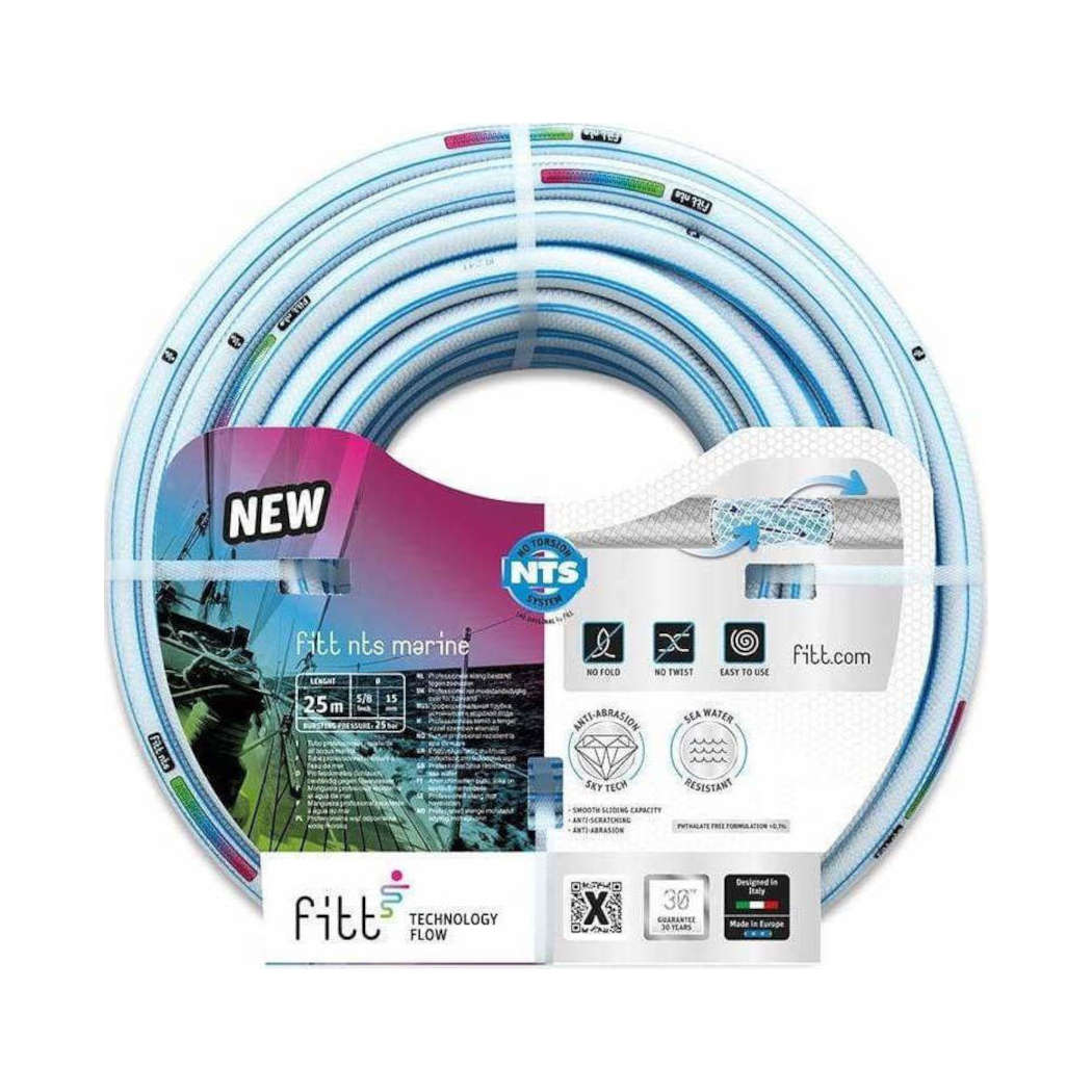 - Κατασκευασμένο με το μοναδικό πλέγμα NTS, το λάστιχο FITT NTS MARINE είναι εξαιρετικά εύχρηστο και εγγυάται αδιάλειπτη ροή νερού χωρίς συστροφές και τσακίσματα. Προορίζεται ιδιαίτερα για χρήση στη ναυτιλία, καθώς είναι ανθεκτικό στο θαλασσινό νερό. Αποτελεί ιδανική λύση για κάθε τύπου σκάφη. Με 6 στρώσεις & SKY TECH επίστρωση : μια διάφανη επίστρωση με δύο μπλε γραμμές με ειδική σύνθεση κατά της UV ακτινοβολίας που αποτρέπει την γήρανση του λάστιχου και προσθέτει ένα σατινέ φινίρισμα, ενίσχυση από πλέγμα NTS, μια ενδιάμεση στρώση υποστήριξης, μια μαύρη επίστρωση κατά της άλγης και λευκό προστατευτικό εσωτερικό.