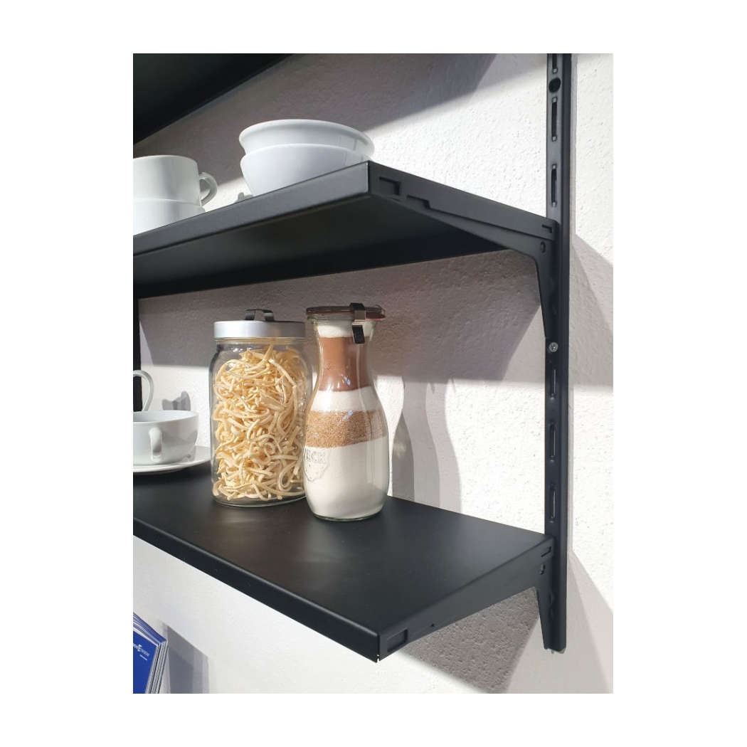 Τοποθετείται σε ορθοστάτη τοίχου μονής ή διπλής διάτρησης. Κατάλληλος μεταλλικά, ξύλινα & γυάλινα ράφια.