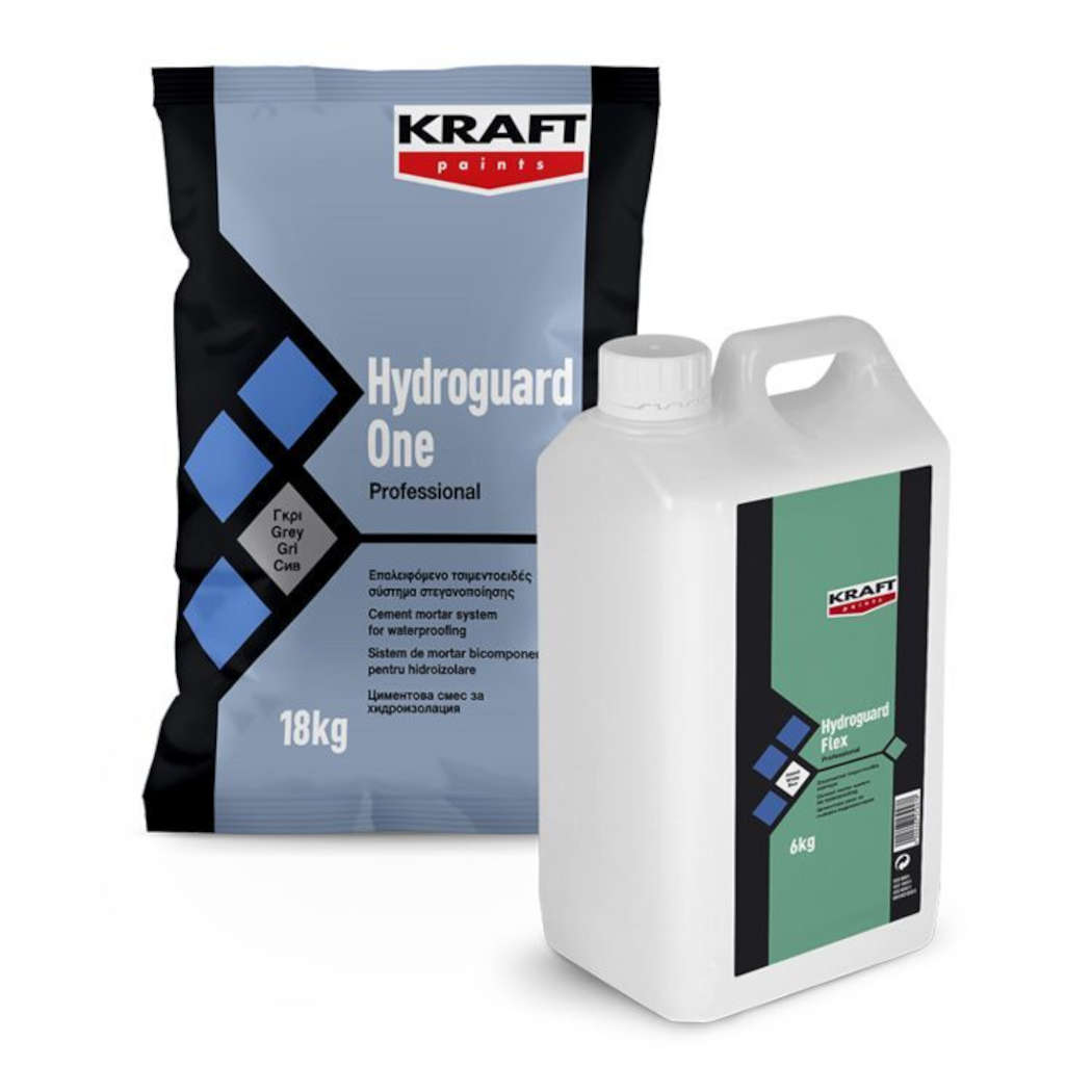 Το KRAFT Hydroguard Flex είναι ένα επαλειφόμενο εύκαμπτο τσιμεντοειδές σύστημα 2 συστατικών, υψηλών μηχανικών αντοχών, εμπλουτισμένο με ακρυλικά πολυμερή, κατάλληλο για στεγανοποίηση και προστασία επιφανειών από σκυρόδεμα, τσιμεντοκονίαμα, πέτρα ή τούβλο.