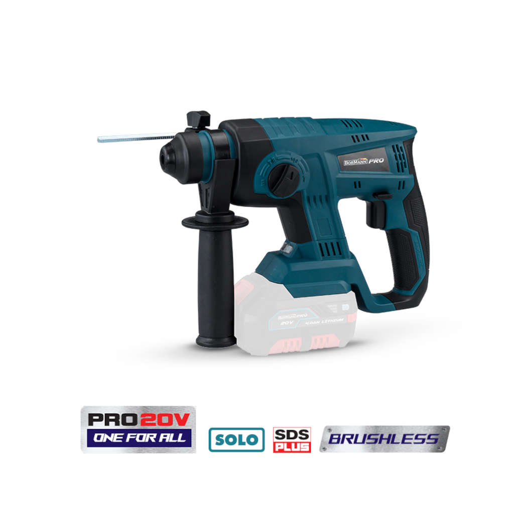 Το μοτέρ χωρίς ψήκτρες παρέχει περισσότερη ισχύ και μεγαλύτερη διάρκεια ζωής. Με πνευματική κρούση, η διάτρηση του μπετού γίνεται παιχνίδι. Η εργονομική λαβή επιτρέπει τον άνετο και ασφαλή χειρισμό του τρυπανιού κάθε στιγμή. Εύκολη και γρήγορη εναλλαγή τρυπανιών χάρη στοSDS–PLUSτσοκ που διαθέτει. Το ενσωματωμένο LED παρέχει μεγάλη ορατότητα ακόμη και σε σκοτεινό περιβάλλον εργασίας Συμβατό με την πλήρη σειρά μπαταριώνBormannPro20-Volt.