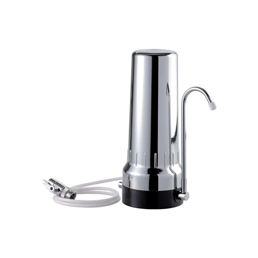 Τοποθετείται δίπλα από το νεροχύτη και συνδέεται σε κανονική και σε θερμομικτική βρύση με σωληνάκι και μεταλλικό διανομέα (diverter) για φιλτραρισμένο ή αφιλτράριστο νερό.