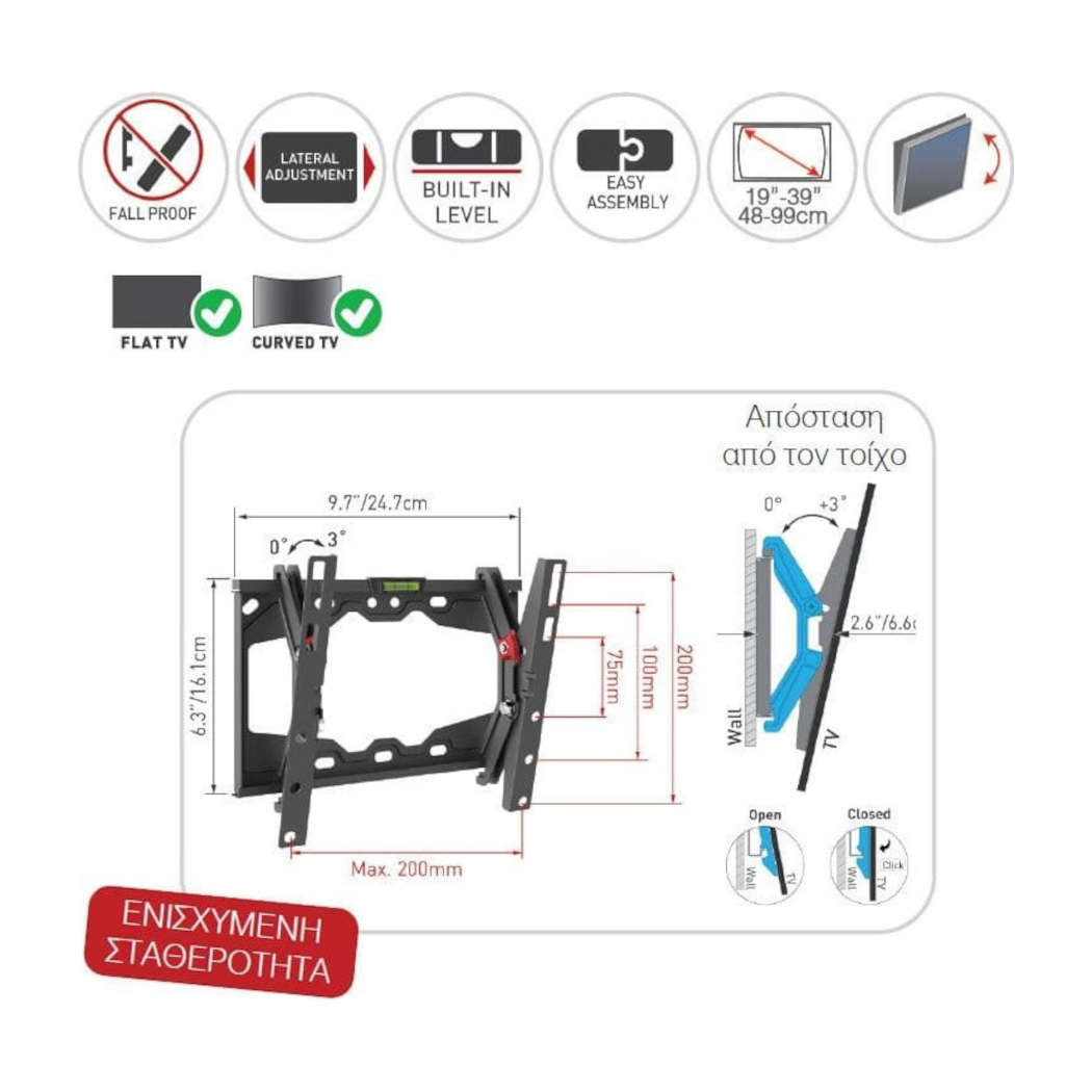 ΒΑΣΗ ΤΗΛΕΟΡΑΣΗΣ ΤΟΙΧΟΥ ΜΕ ΚΛΙΣΗ 13” ΕΩΣ 39″