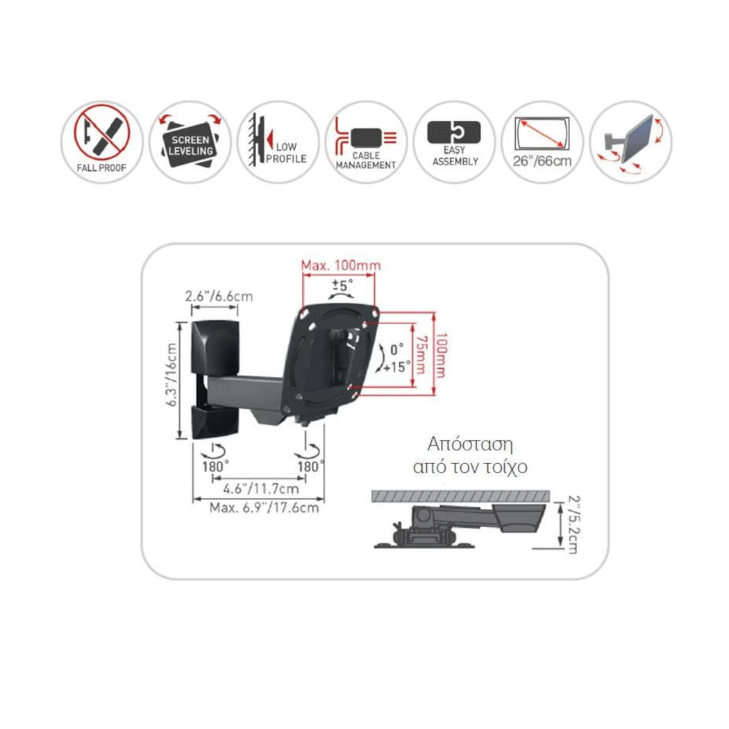 ΒΑΣΗ TV – FLAT / CURVED 3 ΚΙΝΉΣΕΩΝ ( ΠΕΡΙΣΤΡΕΦΟΜΕΝΗ, ΑΝΑΔΙΠΛΟΥΜΕΝΗ & ΜΕ ΚΛΙΣΗ ) , ΕΩΣ 26”
