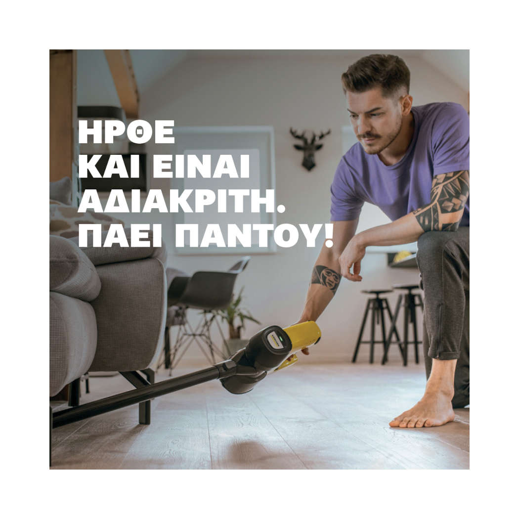 Η μέγιστη ελευθερία κινήσεων συναντά τη μέγιστη άνεση: Η ηλεκτρική σκούπα VC 4 Cordless myHome με χρόνο λειτουργίας έως και 30 λεπτά διευκολύνει το χειριστή της από το να χρειάζεται να σύρει μια μεγάλη συσκευή σκουπίσματος. Τα πολλά έξυπνα χαρακτηριστικά της κάνουν το σκούπισμα απόλαυση: άδειασμα δοχείου σκόνης με 1 κλικ, λειτουργία ενίσχυσης, αθόρυβη λειτουργία, εργονομικός σχεδιασμός και ενεργό ακροφύσιο δαπέδου που εγγυάται αξιόπιστη συλλογή ρύπων σε σκληρά δάπεδα και χαλιά. Το εύχρηστο Power Lock αφαιρεί την ανάγκη να κρατάτε συνεχώς πατημένο το κουμπί λειτουργίας. Ο προσεκτικός σχεδιασμός της σημαίνει επίσης ότι μπορεί να καθαρίσει ακόμη και τις δυσπρόσιτες περιοχές, όπως κατά μήκος του καναπέ ή κάτω από τα έπιπλα.