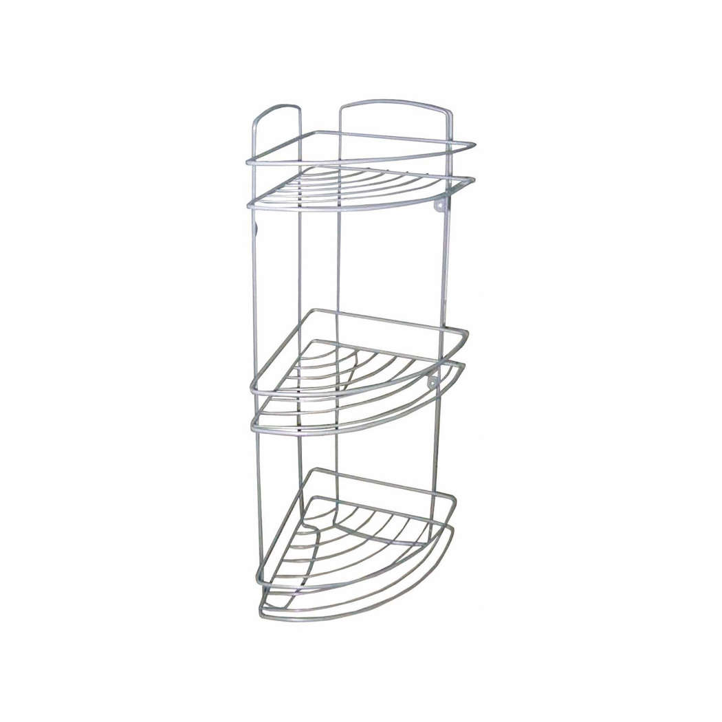 Εταζέρα μεταλλική τριώροφη, με ίνοξ εμφάνιση, για την αποθήκευση αναλώσιμων μπάνιου, συμπεριλαμβάνονται και οι βίδες στήριξης.