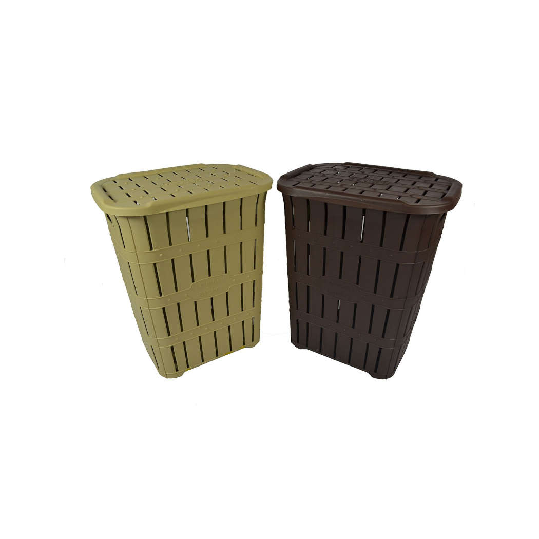 Πλαστικό καλάθι άπλυτων με καπάκι, απομίμηση πλεκτού, μεγάλης χωρητικότητας σε δύο χρώματα.