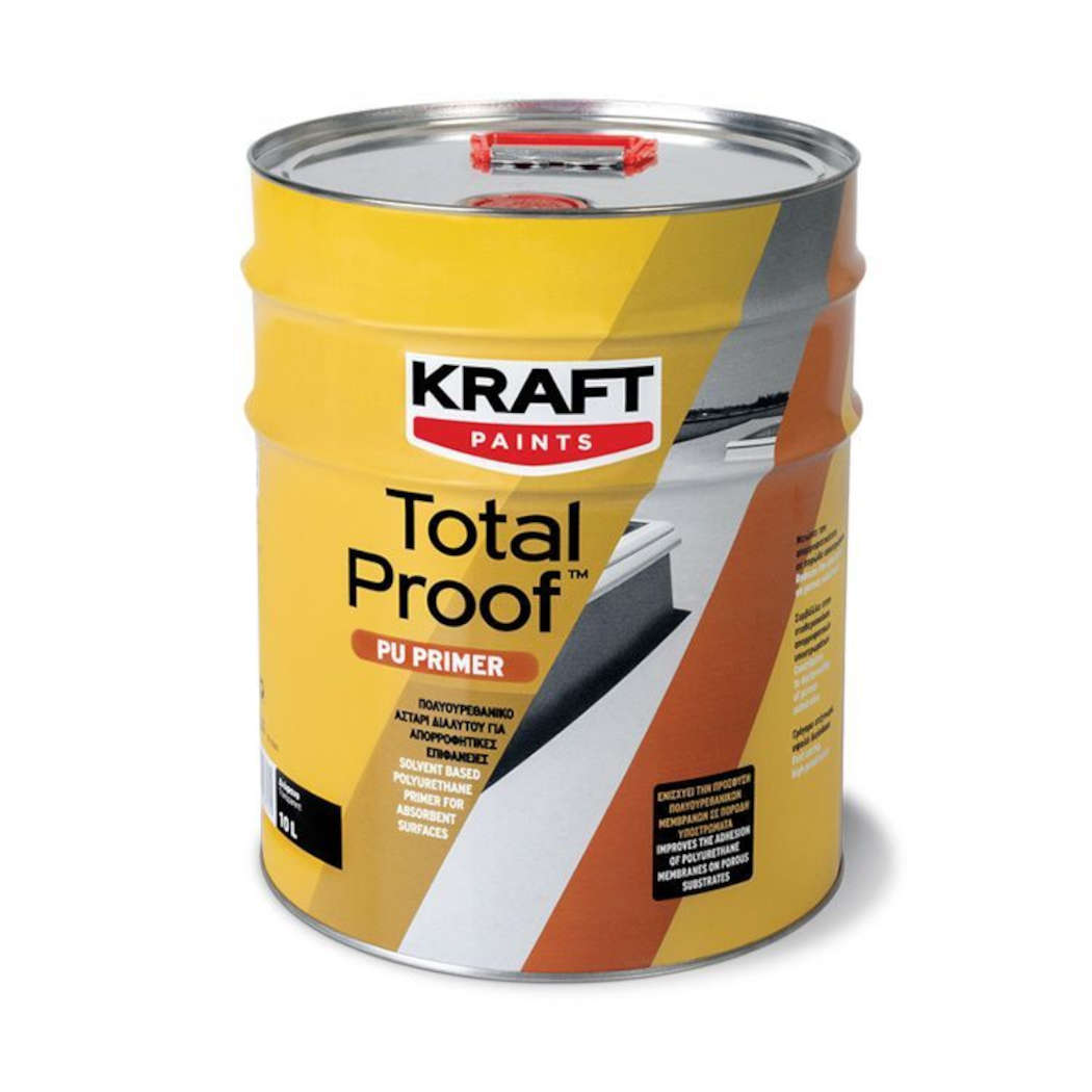 Το KRAFT TOTAL PROOF PU PRIMER είναι ένα διάφανο αστάρι πολυουρεθανικής βάσης. Παρέχει υψηλή διεισδυτικότητα και μεγάλη πρόσφυση σε απορροφητικά υποστρώματα, μεγάλη αντοχή στις μηχανικές καταπονήσεις και την τριβή. Μειώνει την απορροφητικότητα και σταθεροποιεί τα απορροφητικά υποστρώματα, όπως σκυρόδεμα, σοβά, ξύλο, γυψοσανίδες. Έχει γρήγορο στέγνωμα και βελτιώνει την απόδοση της στεγανωτικής μεμβράνης KRAFT TOTAL PROOF PU-S. Μπορεί επίσης να χρησιμοποιηθεί ως σταθεροποιητής σαθρών επιφανειών σε δάπεδα και τοιχία αλλά και ως προστατευτική διαφανής τελική επίστρωση σε δάπεδα με βαρύ φορτίο χημικών, όξινων διαλυμάτων, ελαίων, ορυκτελαίων, κλπ.