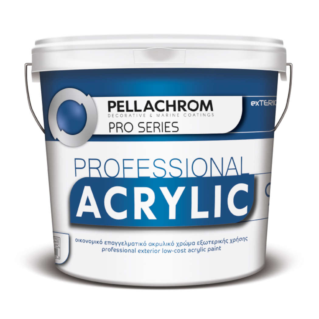 Το PROFESSIONAL ACRYLIC είναι ακρυλικό χρώμα εξωτερικής χρήσης κατάλληλο για τη βαφή επιφανειών από σοβά, μπετόν, τούβλα, κ.α.. Δουλεύεται εύκολα, έχει πολύ καλό άπλωμα και στεγνώνει γρήγορα δημιουργώντας ομοιόμορφη ματ επιφάνεια. Έχει μεγάλη καλυπτικότητα. Αποτελεί οικονομική και αξιόπιστη λύση για τον επαγγελματία ελαιοχρωματιστή. Συνίσταται για τη βαφή και το φρεσκάρισμα χώρων όπως αποθήκες, νοσοκομεία, σχολεία, ξενοδοχεία, δημόσια κτίρια, οροφές, στους οποίους πραγματοποιείται συχνά επαναβαφή.